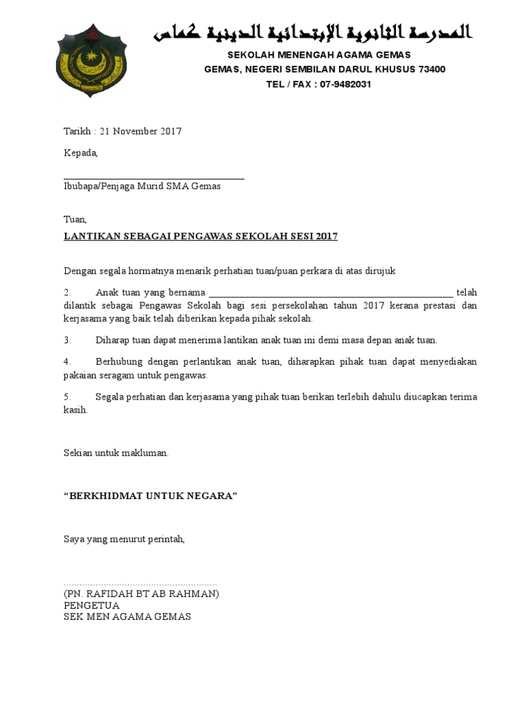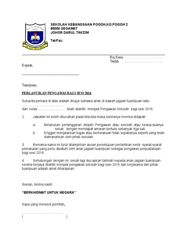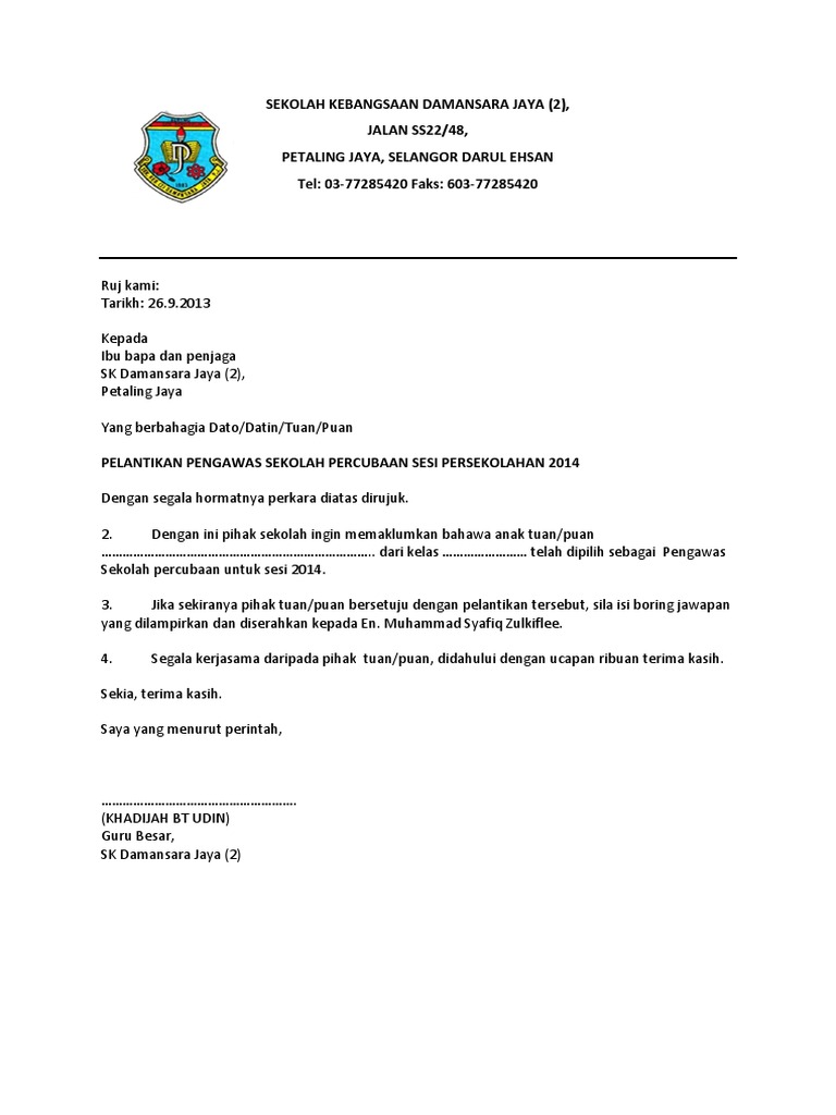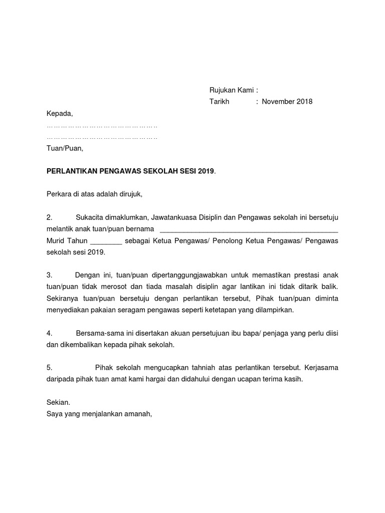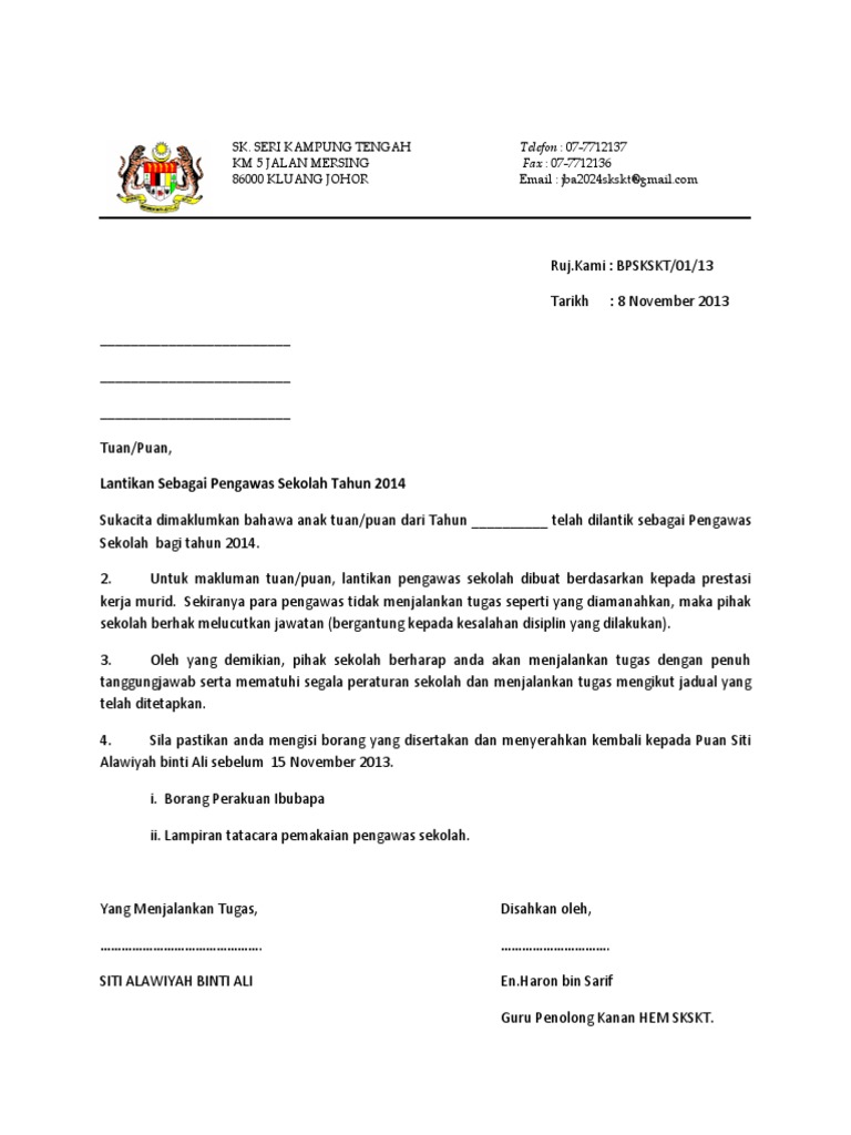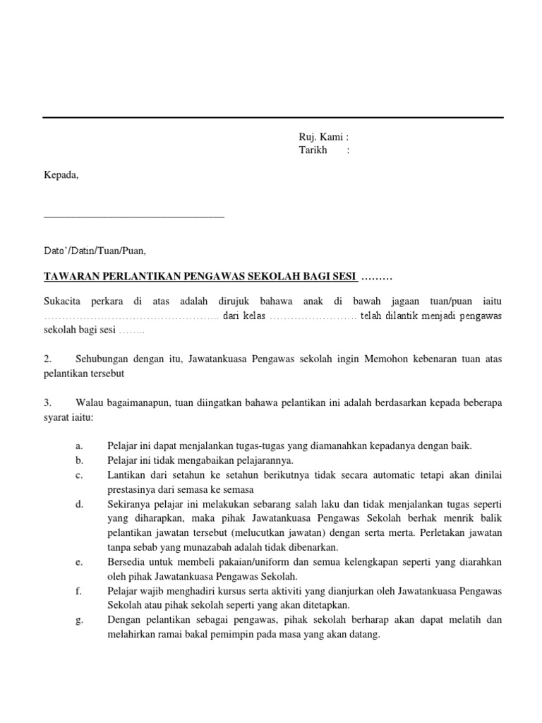 Surat Pelantikan Pengawas Sekolah Rendah Pdf