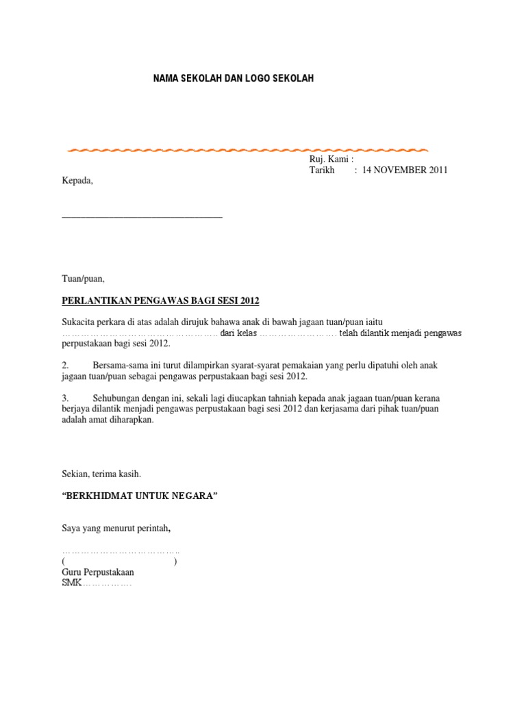 Contoh Surat Pelantikan Pengawas Pusat Sumber Sekolah